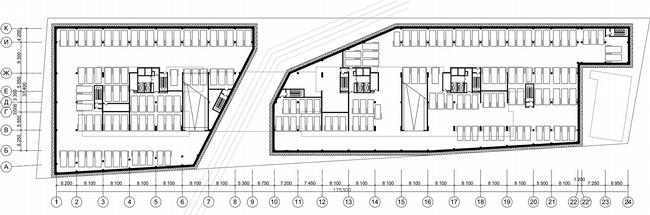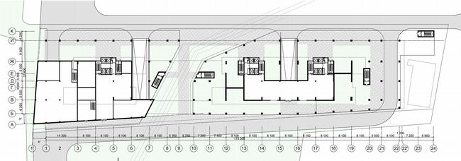 Жилой дом на Нахимовском проспекте. План стилобата © Архитектурное бюро Асадова