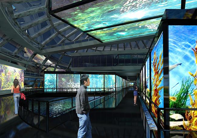 Все корпуса будут построены по принципу «висячих домов» и будут иметь надежно гидроизолированные основания, что гарантирует посетителям центра комфортное времяпрепровождение в любое время года. Между собой объемы соединены крытыми остекленными переходами – эдакими палубами, роднящими гигантский комплекс с межконтинентальным лайнером, которому не страшны никакие бури. Корабельно-морская тематика поддерживается и на идеологическом уровне: в состав «Острова» планируется включить яхт-клуб с пирсом (который, к слову, позволит попадать на Печерские пески по воде), а также Мультимедийный центр виртуальных путешествий по всему земному шару и Океанариум.