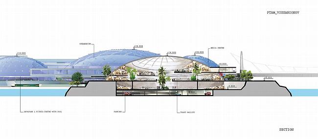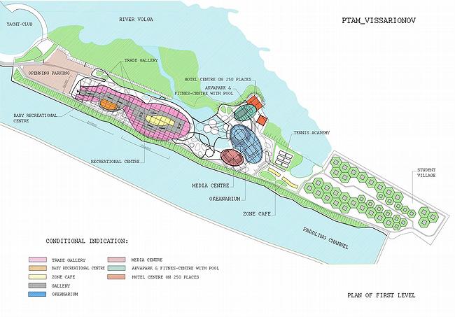 Вместе с тем понятно, что его выигрышное расположение в сочетании с пространственной самодостаточностью не могли не привлечь внимание потенциальных инвесторов. Дискуссии о застройке Печерских песков ведутся в Нижнем Новгороде уже довольно давно, и в ходе дебатов стороны – власти, девелоперы, архитекторы, – успели прийти к единому мнению: на полуострове должен быть размещен многофункциональный комплекс, способный сделать его местом круглосуточной городской активности. Именно поэтому концепция развития территории, разработанная под руководством Юрия Виссарионова, столь богата на типологию возводимых сооружений. В состав комплекса архитектор предлагает включить торгово-развлекательный и спортивный центры, аквапарк, конгресс-холл, медицинский центр, гостиницы категории 3 и 4 «звезды», кемпинг-поселок, а также зоны активного отдыха.