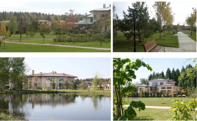О поселке «Графские пруды» мы уже писали. Больше трети его территории занимают общественные пространства – зоны отдыха, искусственный пруд, а также ключевой элемент – километровый бульвар-променад, разделенный на шесть сегментов, каждый из которых выполнен в определенном стиле – русский сад с яблонями и вишнями, французский парк, сад камней. Поселок строился в 2006–2008 годах на Киевском шоссе компанией «Аллтек Девелопмент» и уже получал признание в национальных конкурсах.