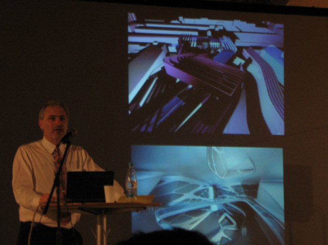 Послушать лекцию ‘Sex and architecture’ собрались сотни четыре человек артистической молодежи; не исключено, что кто-то был привлечен заманчивым названием, довольно-таки скандальным, хотя, как водится, скандальности в лекции и не оказалось. На самом деле это название – провокативная игра слов: строго говоря, ‘sex’ в данном случае переводится на русский язык не как «секс», а как «пол». Знаменитый критик давно занимается проблемой проявлений гендерных отношений в архитектуре и написал на эту тему несколько книг. Однако, поддерживая неоднозначно-шутливый тон, Бецки вначале даже предупредил аудиторию, что пара картинок будет непристойного вида.