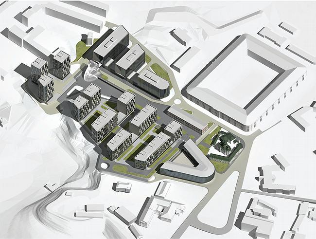 С другой стороны, комфорт жильцов обеспечивается за счет вертикального разделения приватных и общедоступных территорий – все относящиеся к жилой части дворы приподнимаются на 5 метров над землей, образуя второй ярус открытых пространств. Таким образом поддерживается тема исторических валов, которые дополняются новыми перепадами рельефа и включаются в общую игру ландшафта. Надо сказать, для Киева такое активное отношение к ландшафту пока нехарактерно, здесь чаще выравнивают площадку и строят на ней нечто подобное стандартным подмосковным поселкам. Поэтому, какой бы не оказалась судьба данного проекта (результаты конкурса ее неизвестны) – уже можно говорить, что проект так или иначе наметил новое направление в манере освоения Киева девелоперами. фотовстройка
