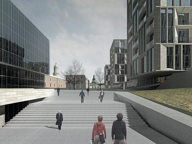 Своим проектом авторы решают также и важную градостроительную проблему этой части города. Тот, кто здесь бывал, помнит, что несмотря на историческую значимость района, он выглядит достаточно некомфортным для пешехода, пока не попадаешь внутрь комплекса лавры. Новый же квартал обещает стать приятным местом времяпрепровождения благодаря отказу архитекторов и девелоперов от создания закрытой территории в пользу включения в проект общественных функций и практически полного удаления автомобильных дорог из внутриквартального пространства.
