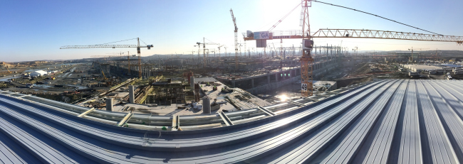 Новый аэропорт от команды Grimshaw, Nordic Office of Architecture и Haptic Architects в Стамбуле – это даже не отдельный город, а самодостаточная вселенная под собственным небом. Единая крыша, поднятая гораздо выше внутренних членений аэропорта, пронизана искусственным и естественным светом, подобно облачному небу. Ажурная легкость потолков, его бело-голубой цвет, шаг и расположение колонн делают крышу практически невесомой. Сочетание естественного и искусственного верхнего освещения напоминает о солнце, звездах и луне, дневной и ночной «системах освещения» мира. Авторы проекта предполагают, что строгая геометрия потолка и выявление ключевых зон с помощью естественного света помогут пассажирам не потеряться внутри аэропорта, то есть по искусственному небу можно будет ориентироваться. Это в сочетании с наполненностью перекрытия климатическими установками дополняет эстетическую аналогию с небом еще и тождеством функций.