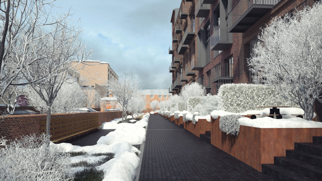 «Гуляя по его липовым аллеям с разбросанными причудливыми музейными домиками, ты оказываешься в удивительной атмосфере камерной московской усадьбы, – признается один из авторов проекта Наталья Сидорова. – Здесь же, рядом расположены жилые многоэтажки и брутальные промышленные постройки дореволюционного и советского периода. Мы не могли не учесть этого пёстрого соседства и постарались найти решение, органичное контрастной среде, но наделенное индивидуальным характером. И сформировать комфортное дворовое пространство без «подсказок» со стороны городского контекста».
