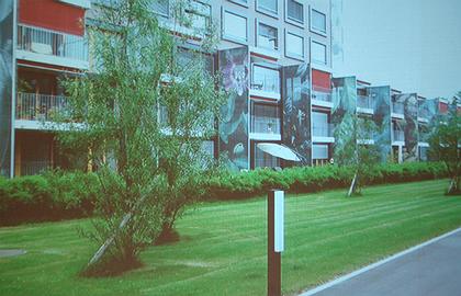 К этой же смешанной типологии относятся здания, которые «Буркхалтэр и Суми» украсили крупными полупрозрачными панелями с фотографиями цветов – по убеждению архитектора, крупная картинка не только украшает и напоминает о природе, но и «съедает» масштаб. Смешанная типология