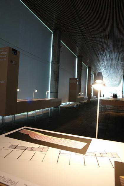 В случае Мадрида, который, наравне с Барселоной, считается одним из самых передовых в этой сфере мегаполисов в мире (особенно в отношении реконструкции и нового строительства спальных районов) на выставке были продемонстрированы «звёздные» экзерсисы на тему доступного жилья: обошедший, кажется, все архитектурные журналы комплекс «Мирадор» мастерской MVRDV и застройка районов Карабанчель и Усера, где работали, наряду с испанскими архитекторами, FOA, Виль Аретс и Том Мейн. Эти постройки ярки по своему образному строю, в эти проекты включены остроумные решения и привлекательные «жесты», но главное их отличие от второй части программы Международного павильона заключается в статусе их авторов. То есть, видимо, эта подборка проектов должна переломить сложившийся стереотип, относящий проектирование массового жилья к занятиям неинтересным, зачастую чисто техническим, и недостойным «успешных» архитекторов.Вид экспозиции Международного павильона Московской биеннале архитектуры в портике ЦДХ
