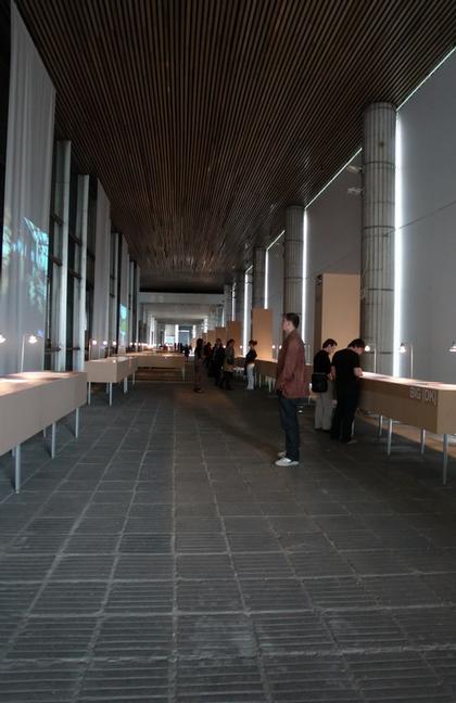 Вид экспозиции Международного павильона Московской биеннале архитектуры в портике ЦДХ