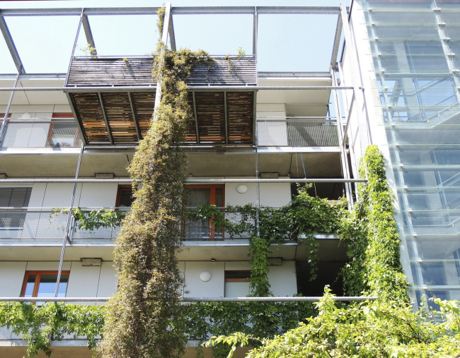 Когда здание было сдано в эксплуатацию, на каркасном фасаде были размещены вьющиеся растения. Сегодня они разрослись и стали очень удачным дополнением к архитектурному облику Rigoletto.