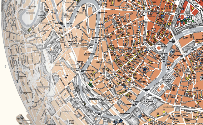 По оценке коллег-картографов, эта основа идеально подходит для наглядного отображения специального содержания любой тематики – объектов культуры, бизнеса или различных ведомств, сконцентрированных преимущественно в центре города.