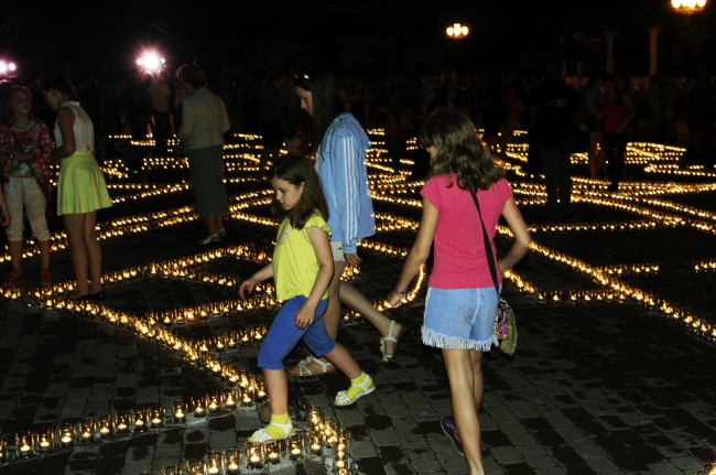 Акция «Вальс на память». Вид сверху – карта города 1941 года из тысяч свечей. Фотография предоставлена организаторами «Арт-Оврага»