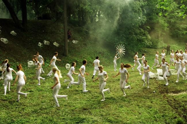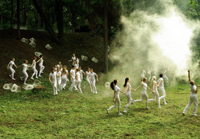 Зрители охотно поддержали чиновника, а после чего устремились к последнему представлению, танцевальному перформансу «В поисках воды», в одном из глубоких оврагов парка. Там люди в белом в облаках дыма с помощью одной только пластики тела пытались раскрыть суть заявленной темы фестиваля – «Берега искусств». Среди танцоров были и волонтёры – жители Выксы, а закончилось дело обниманием актёров со зрителями.