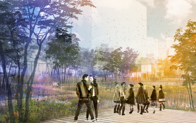 T+T architects уделили максимум внимания будущим жителям жилого комплекса: «поскольку именно таких посетителей здесь будет больше всего». Проанализировав территорию, архитекторы обнаружили несколько ключевых точек входа: южную, центральную и северную, разместив там три главные входные группы и подчинив им основные маршруты движения гуляющих.