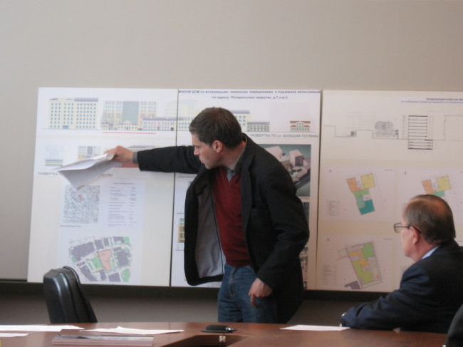 К нынешнему заседанию два основных фактора, тормозившие проект – ландшафтно-визуальный анализ и отношения нового объекта с территорией, подконтрольной Москомнаследию – были согласованы. От того, что этот дом будет видно с Большой Полянки, «никуда не денешься» – поэтому, так как здание находится внутри квартала и соблюдает высотные параметры окружающих домов, оно было признано разумно дополняющим этот исторический квартал.