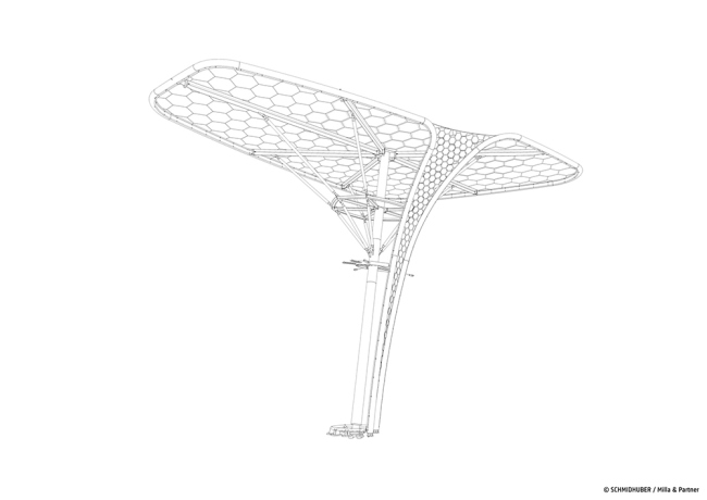 Благодаря применению передовых органических фотоэлектрических (OPV) технологий «саженцы» работают как гигантские «солнечные деревья». Немецкий павильон является первым крупным архитектурным проектом международного уровня, где использован этот новаторский продукт. В отличие от работы с обычными солнечными модулями, архитекторы павильона Германии были гораздо более свободны в использовании гибких OPV-мембранных модулей в ходе воплощения своих творческих идей и интеграции их в общую концепцию павильона. Полученная энергия используется для подсветки «саженцев» в темное время суток.