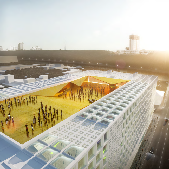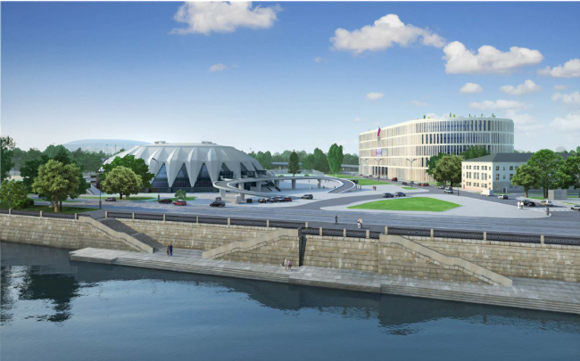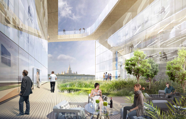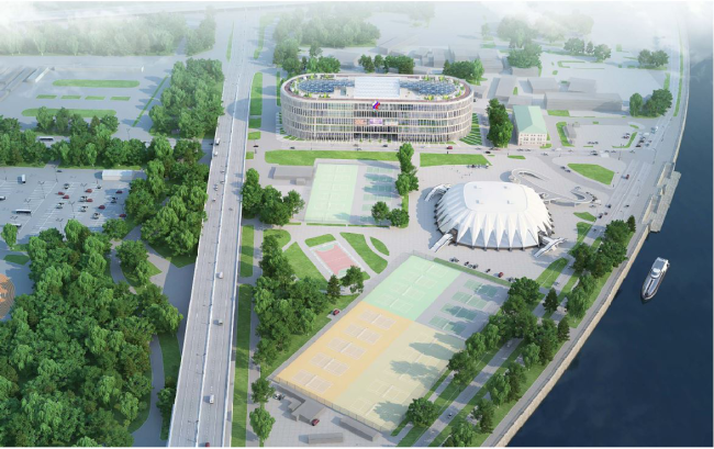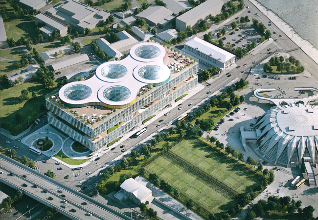 Архитекторы «Меганома» продолжают в своем проекте идею создания «Портов будущего», которая легла в основу их конкурсной концепции развития прибрежных территорий Москвы-реки. Так, на прибрежной территории появляется Олимпийский порт. Основной акцент сделан на внутреннем пространстве здания, открытого взглядам из-за того, что участок расположен на низком берегу.