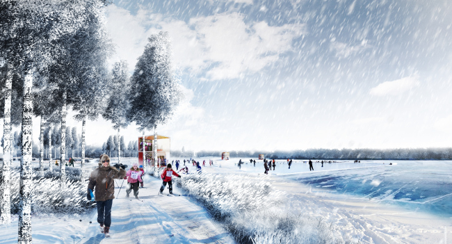Концепция проекта-победителя основана на идее «эластичной ленты» – группы ландшафтов, проложенных вдоль озер Кабан. Экологическая лента предусматривает объединение зеленых насаждений и создание уникальной системы очистки сточных вод. Следующий тип ландшафта – культурный – будет способствовать интеграции памятников исторического и культурного наследия, также в его пределах планируется сформировать пространство с различными видами проведения досуга. И последний пояс – зона низкоскоростного транспорта, где будут проложены велосипедные и пешеходные дорожки.