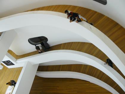 Наряду с собственно выставочным пространством, в комплекс здания Фонда входят одноэтажные корпуса художественных мастерских, а в подземном этаже – небольшая аудитория, запасник, архивы, а также – паркинг, расположенный под шоссе. Вибрация пространства и формы, скульптурная красота объемов, воспринимающаяся и снаружи, и изнутри постройки, выделяют это сооружение в череде других замечательных музейных зданий последних лет.Фонд Ибере Камарго