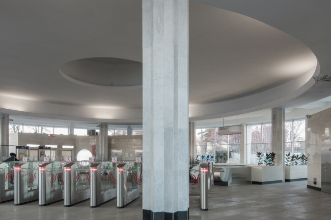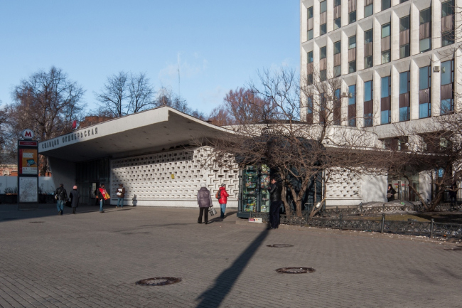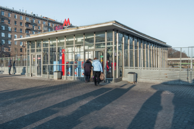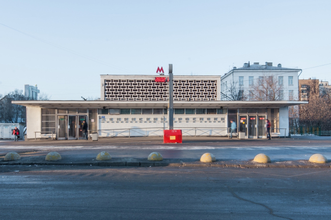 «Вестибюли московского метро конца 1950 – конца 1970-х годов почему-то часто оказываются вне поля зрения исследователей архитектуры наземных сооружений метрополитена, хотя некоторые из этих вестибюлей – весьма любопытные объекты. Если в середине 1930-х годов в архитектуре московских наземных вестибюлей преобладали интересные и разнообразные формы – от авангардистского портала «Красных ворот» до упрощенной неоклассики «Парк Культуры», то послевоенная архитектура была выдержана в русле монументальной, тяжеловесной эклектики – в отличие от более изящных вестибюлей ленинградского метро середины 1950-х годов. Правда, московские вестибюли имели акцент лишь на главный фасад, т.к. в большинстве случаев должны были быть встроены в более крупные здания. Борьба с архитектурными излишествами в 1955 привела к тому, что все эти сооружения превратились в постройки павильонного типа, но сохранили свою монументальную композицию и некоторые мотивы упрощенной неоклассики. Такие примеры можно видеть у станций метро «Университет», «Спортивная», «Рижская», «Щербаковская» (ныне – «Алексеевская») и «ВДНХ». В тот момент стало понятно, что архитектура этих сооружений должна быть иной – более экономичной и при этом более современной.