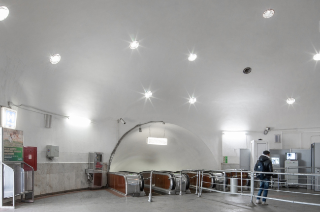 «Октябрьская – радиальная» Архитекторы вестибюля: А.Ф. Стрелков, Н.А. Алешина, Ю.В. Вдовин Инженеры-конструкторы: Ю.З. Муромцев, Л.В. Сачкова 1962 «Октябрьская – радиальная» © Денис Есаков