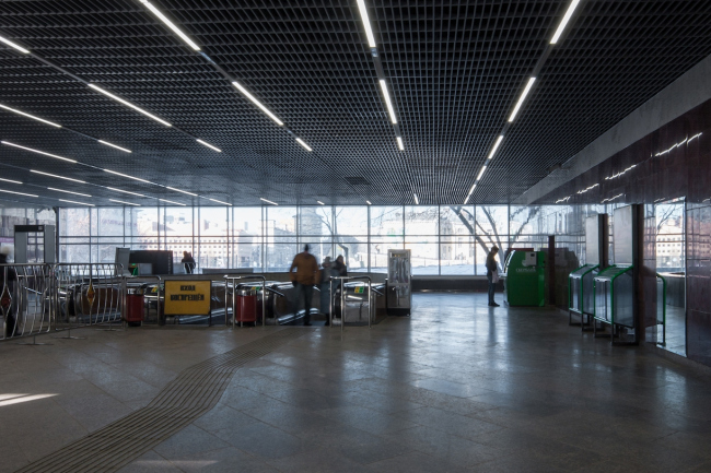 «Баррикадная» Архитекторы вестибюля: А.Ф.Стрелков, В.Г.Поликарпова Инженер-конструктор: Е.С.Барский 1972