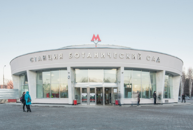 Аналогичное решение применили в 1978 архитекторы Н. Демчинский и Ю. Колесникова, спроектировавшие наземный вестибюль станции «Ботанический сад», который, по замыслу архитекторов, должен был выходить в обширный парк. Именно с этой целью сделали легкое остекление ротонды, призванное обеспечивать визуальную связь с природой, а внутри вестибюля был спроектирован зимний сад.