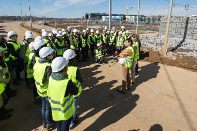 Будущие архитекторы и сегодняшние слушатели двух вузовских факультетов: «Архитектура общественных и жилых зданий» и «Реконструкция и реставрация архитектурных комплексов» побывали на стройплощадках жилых кварталов 9, 10 и 11 ИЦ «Сколково» и увидели в реальном режиме, как отстраивается район, где в скором времени будет работать элита российской и зарубежной науки.
