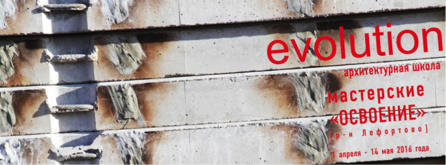 Архитектурная школа «ЭВОЛЮЦИЯ» стартовала в рамках масштабного проекта «Про.Движение». Пилотный проект назван мастерскими «ОСВОЕНИЕ» и посвящён преобразованию четырёх проблемных участков района Лефортово, на территории которого в пространстве PROVODKA на московском заводе «Кристалл» и будет вестись учебная практика. В течение полутора месяцев 47 участников, отобранных из 85 поступивших заявок, под руководством известных архитекторов-кураторов разработают свои концептуальные предложения. Лучшие из них экспертный совет школы отберёт для участия в XXI Международной выставке архитектуры и дизайна АРХ Москва.