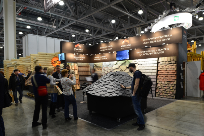 На выставке «Деревянный Дом», прошедшей в конце марта в московском «Крокус Экспо», экспозиция компании АРХИТАЙЛ была одной из самых насыщенных, представляя редкую возможность не только подобрать для себя красивую кровлю или фасадную отделку, но и сразу получить техническую консультацию инженеров компании или заказать рассчет проекта.
