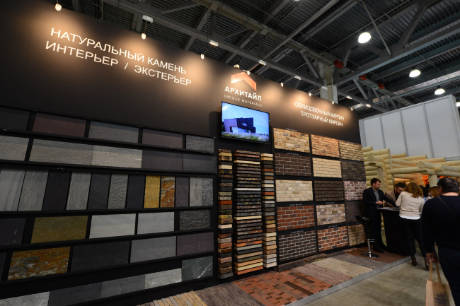 Компания АРХИТАЙЛ поставляет на российский рынок также облицовочный и тротуарный кирпич. Эти материалы экспонировались на выставке. Английская черепица (терракотовая керамика) и кирпич «ручной работы» были показаны компанией Sahtas UK (Великобритания). А клинкерный кирпич ручной работы различных текстур и цветов (черный, красный, желтый) был представлен компанией PETERSEN TEGL/KOLUMBA (Дания).