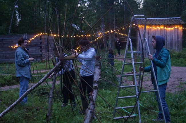 Архитектурная программа построена таким образом- дети, их родители, архитекторы, художники, плотники, музыканты и другие молодые специалисты в области архитектуры и искусства объединяются в творческом процессе в природной среде.