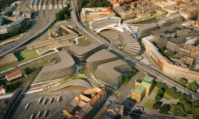 Бюро Захи Хадид представило проект делового района у пражского вокзала им. Масарика.