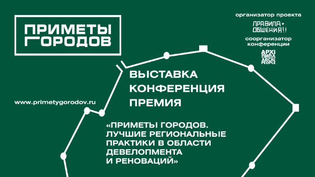 В рамках V Московской биеннале архитектуры и XXI Международной выставки архитектуры и дизайна Арх Москва прошла конференция «Приметы городов. Лучшие региональные практики в области девелопмента и реноваций». Конференция – часть большого проекта, включающего также общероссийскую премию и выставку, на которой были представлены 14 городов со своими культурными достижениями. В планах организаторов – отправить выставку на гастроли по России, постепенно наращивая количество представленных на ней городов, а также продолжить сбор лучших девелоперских проектов, реализуемых на территории России, с целью изучения и популяризации хороших начинаний.