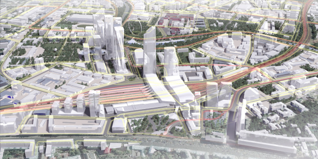 Проект охватывает территорию от Курского вокзала до завода «Серп и Молот». Этот район, по мнению проектировщиков, всегда оставался «на задворках» города, а строительство Курского вокзала только усугубило проблему. Здесь мало жилой и коммерческой застройки и много заброшенных участков. Транзитная набережная реки Яузы разрезает район шумной магистралью. Создание общественных пространств не решает проблем территории. В качестве альтернативы предлагается устройство полноценной общегородской двухконтурной системы улиц и дорог. Одновременно с переосмыслением роли общественного транспорта и его комплексной модернизацией такой подход будет генерировать необходимые условия для дальнейшего качественного развития всех районов Москвы.