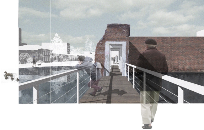 Дарья Герасимова: «Я рассматриваю в качестве «базового» понятия старость – как форму существования. Определение локации для объекта в центре города Казани повлекло за собой решение двух других проблем: градостроительной с особенностями квартальной структуры и культурной – пересмотр отношения в городе к исторической деревянной застройке. То есть поиск альтернатив, исключающих снос этих построек. Результатом стал проект городского дома для престарелых, часть резидентов которого способны вести активную жизнь. Проектом предполагается возведение одно- и двухэтажных домов на основе сохраненных деревянных сооружений. Все здания различны по типологии, но связанны между собой. Резиденты, таким образом, получают возможность взаимодействовать с местными жителями благодаря включению в комплекс дома престарелых многофункционального общественного центра и дополнительных сервисов, актуальных для горожан. Те резиденты, которым необходим стационарный уход, размещаются в отдельном здании с полноценным медицинским оснащением. Во внутренней части квартала возникает городской парк с небольшим прудом, связывающий дом престарелых с имеющимся на участке детским садом. Эта своеобразная связь поколений дает особую социальную и психологическую помощь и поддержку пожилым людям».
