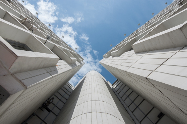 Инженерный корпус – как пришелец из другой реальности: он стоит особняком среди остальной застройки проспекта. Здание одновременно статично и текуче: его масштабный объем виден еще издали, бруталистский образ прочно отпечатывается в памяти с первого взгляда. С другой стороны, своей формой и плавными сглаженными углами инженерный корпус огибает сохранившийся флигель усадьбы, создавая пешеходный проход и небольшую площадь в пространстве между зданиями. Ритмические ряды окон с бетонными «наличниками» усиливают ощущение динамики, здание как будто перетекает с переднего плана на задний. С этими наличниками, кстати, связана история, которая чуть не поставила под угрозу завершение постройки: на заливку нестандартных элементов из бетона на заводе была выделена только одна форма, и производство никак не укладывалось в сроки строительства. Пришлось с большим трудом «выбивать» на заводе вторую форму, чтобы строительство не остановилось. Здание в итоге завершили, оно и сегодня выполняет свои функции.