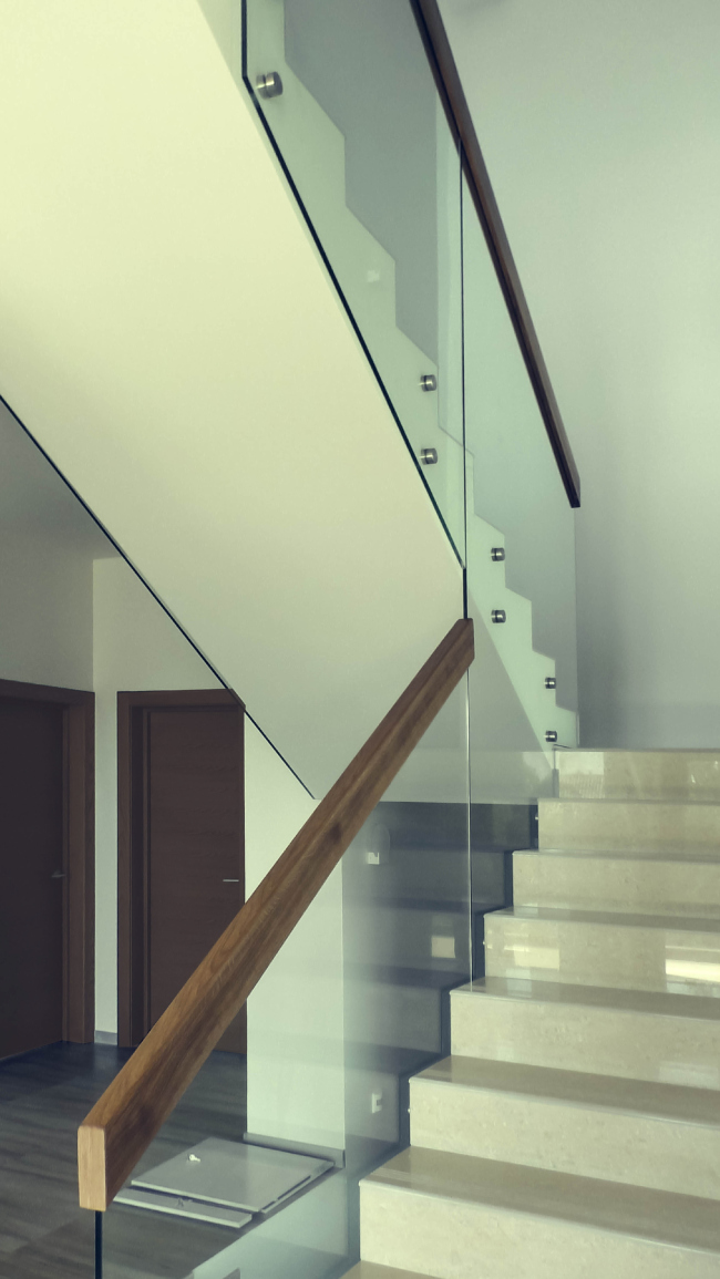 Стеклянное ограждение F 40, установленное при постройке лестницы жилого дома в посёлке «Десна», позволило решить сразу две проблемы.