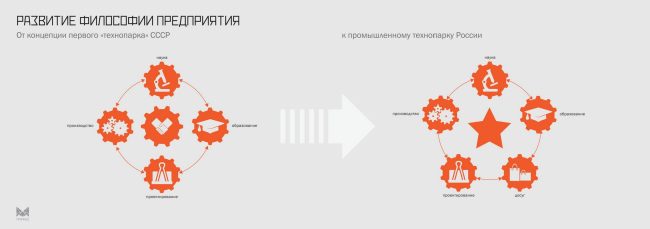 Анна: Команда «Промкод» сотрудничает с Ассоциацией индустриальных парков. Безусловно, мы понимаем разницу. У большинства людей индустриальные парки ассоциируются с потоковым производством: не очень современным и экологически чистым, которое обычно выносят за пределы города. В них может быть не более 20% офисной части, все остальное занимает производственно-складская функция. В промышленном технопарке порядка 30% – это непрофильные резиденты, которые выполняют функцию дополнительного источника дохода. Мы в эти 30% закладывали образовательную функцию, коворкинг для инженеров, детский технопарк и другие объекты среды для жизни. Мы считаем, что на горизонте 10–15 лет производства внутри Москвы не будет, либо оно станет высокотехнологичным и экологически чистым. Поэтому, до сих пор мы настаиваем на более адаптивной формулировке «научно-промышленный технопарк».
