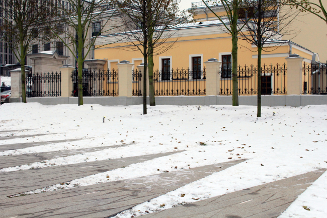 Во-вторых, дело малое, но хорошее оказывается в подчинённом положении, в буквальном и переносном смысле «у ног» бронзового памятника. Архитекторы предлагали сделать наземный переход перед метро – идею не поддержали. Поэтому идею обустройства существующей стихийной тропинки не удалось полностью реализовать, закруглить в маршрут. О тропинке надо сказать отдельно. В современной урбанистической культуре, которая начала формироваться где-то в 70-е – 80-е годы в том числе и в Москве, обустройство стихийных тропинок – одна из важных идей. Эта культура в идеале даже не направляет потоки, а сама следует за ними, проявляя удивительное по нашим временам народничество, реинкарнацию идеи XIX века, когда на народ не смотрят свысока, стремясь его, тупой, обмануть или, наоборот, научить, организовать и возглавить. В стихийной воле народа, которая выражается, к примеру, в протоптанном коротком пути, видят некий идеал совершенства, в данном случае практицизма. Нам тяжело ходить вокруг – мы идём напрямик, а архитектор принимает это решение, ну, практически как волю Божию – значит, здесь дорога и нужна. Логика эта очень симпатичная, и, повторюсь, ей уже больше сорока лет, наверное. Она как вишенка на торте украшает разные проекты. Но она совершенно противоположна идее парадного памятника, к которому надо подходить по парадной лестнице напрямик. Здесь получилось так, что бывшая народная тропа, а теперь лестница умеренно-парадная с признаками амфитеатра подходит к памятнику сбоку: пафосный памятник встал на народную тропу, но как-то боком. Подойти с парадной точки, гладя анфас, невозможно: что, конечно, прежде всего результат переносов – памятник планировали поставить над рекой, а поставили на лужайке, к которой даже подойти от Волхонки, куда князь смотрит, толком нельзя, а только посмотреть. Нарушены все каноны, и конечно, из-за общественного мнения, сбора подписей против – т.е. тут тоже сыграла своё народная воля, но она пошла поперек памятника, так что органично не получилось.