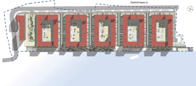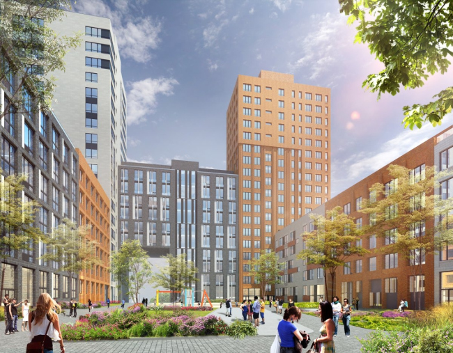Изучив самобытность применения кирпичной облицовки на территории России, Сергей Чобан предлагает собственный взгляд на её использование в своих проектах. Первый – проект многофункционального комплекса «Западный порт» на Шелепихинской набережной в Москве. Это протяженная масштабная застройка у воды, состоящая из пяти разноэтажных кварталов. Над проектом работал консорциум трёх московских архитектурных бюро – SPEECH, ADM architects и ТПО Резерв. Поэтому после разработки единой архитектурной концепции, где каждый из пяти кварталов формируется из одинаковых прямоугольных в плане замкнутых дворов, каждая мастерская предложила собственное решение фасадов. Поскольку по форме все здания идентичны друг другу, и различаются лишь габаритами и этажностью, фасады должны были выполнять в проекте наиболее важные функции: придавать каждому корпусу индивидуальность, впрочем не спорящую с соседствующими постройками и служащую для целостного оформления набережной. И снова архитекторы пришли к выводу, что лучшим решением станет цветовой контраст: сочетание тёмного кирпича и светлого натурального камня. Различия оттенков как первого, так и второго материалов, вероятнее всего, будет достаточно для гармоничного оформления набережной единой вереницей разных фасадов.