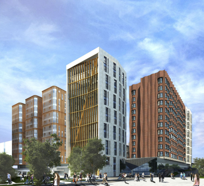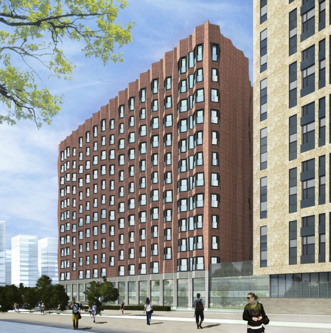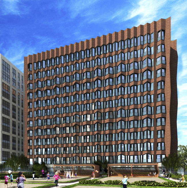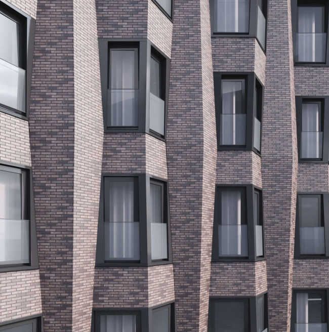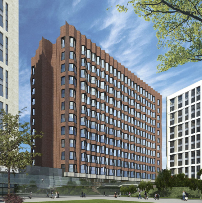 Ещё один московский пример – выполненный бюро SPEECH проект жилого комплекса на территории реконструируемого ЗИЛа. Так как речь идёт об одном из самых грандиозных проектов Москвы последних лет, в котором участвуют практически все яркие архитекторы, то в проекте отдельного, хоть и большого, здания было необходимо учитывать все принципы общего плана, заложенные в концепции комплекса. Сергей Чобан обратился к эстетике советского конструктивизма, разделив кирпичные фасады зубчатыми пилонами «колоссального ордера», состоящими из трёх вертикалей треугольного сечения.