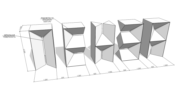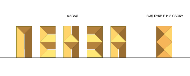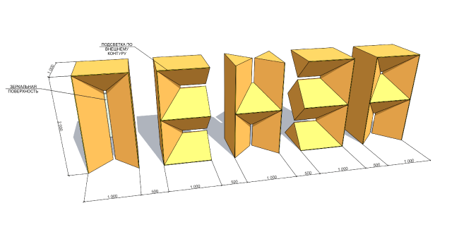 Прообразами объемных букв послужили символ Пензы – монумент «Росток», традиционные особенности зодчества: перспективный портал, золотой цвет, пропорционирование на основе куба. Это связывает объемные буквы с городом, делает их одновременно современными и традиционными. Кроме того, золотой цвет хорошо вписывается в праздничное новогоднее оформление города.