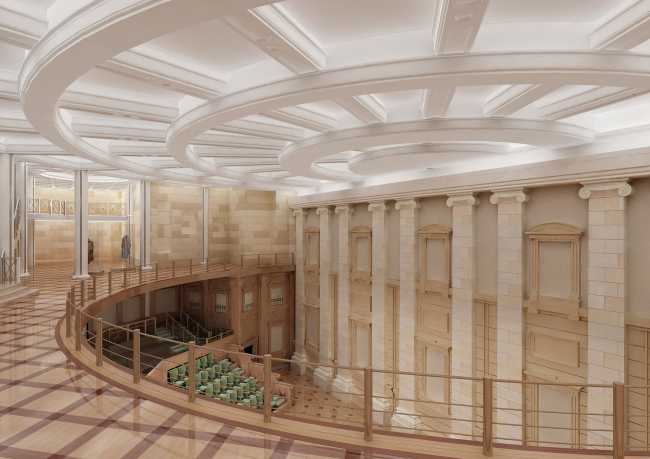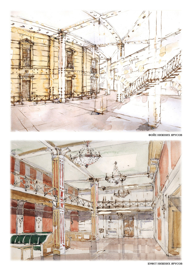 В проекте реконструкции Большого театра мы постарались использовать этот же принцип, четко разделяя новое и старое за счёт освоения подземного пространства. Истории реконструкции Большого театра больше двадцати лет. Когда я пришёл в 1996 году в Моспроект, Вавакин рассказал мне о проблеме: у театра нет вестибюля. Гардероб исторически был совсем маленьким, потому что в нём раздевался только партер; бенуар раздевался в бенуаре, ложи в ложах, а галерка вообще никуда не сдавала пальто. Поэтому требовалось найти место и для того, чтобы расширить гардероб. Непонятно было, как расширить вестибюль, не отодвигать же портик. К тому же прямо перед портиком шёл подземный коллектор – и я предложил его отодвинуть поближе к скверу. И мы предложили разместить там двухъярусный паркинг с продолжением гардероба.