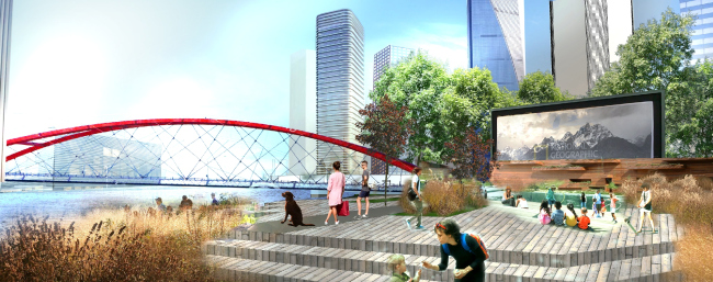В проекте голландцев жюри оценило сразу несколько интересных решений. К примеру, между берегами реки Миасс в этой концепции появился остров, где предлагается построить жилые высотки. Архитекторы настаивают на необходимости возведения именно высотных зданий, ведь они позволят освободить место для создания общественных пространств и зеленых зон. Старый город должен по-новому заиграть на фоне современной архитектуры, а благоустройство существующих в Челябинске парков, скверов, площадей сделает центр южноуральской столицы абсолютно неузнаваемым – комфортным, ярким, интересным.