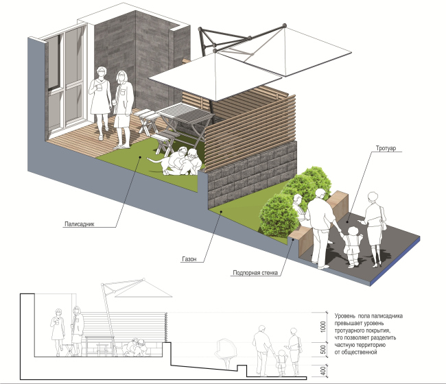 Решение, найденное , позволило, как сделать территорию «Каменного ручья» отчасти проницаемой для транзитных потоков, так и сгладить проблемы, связанные с рельефом.