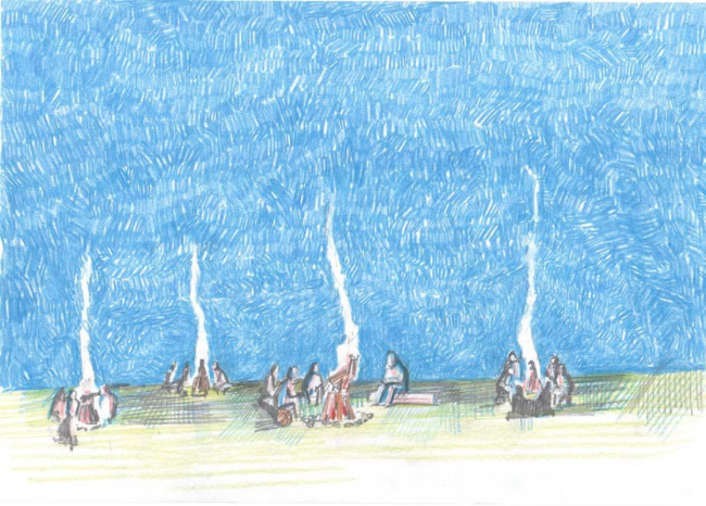 Проект «Дом с люстрой» архитектурного бюро «Хвоя» для «Архстояния-2017». Изображение предоставлено командой фестиваля «Архстояние»*** Быть вместеКрасноярский художник Алексей Мартинс, победитель опен-колла на участие в фестивале, предлагает одновременно разжечь около сотни костров, вокруг которых гости «Архстояния» соберутся для знакомства и общения. Изображение предоставлено командой фестиваля «Архстояние»*** КонураПроект Виктории Чупахиной – о сосуществовании человека и животного. «Конура» будет собрана из веток и собачьей шерсти.
