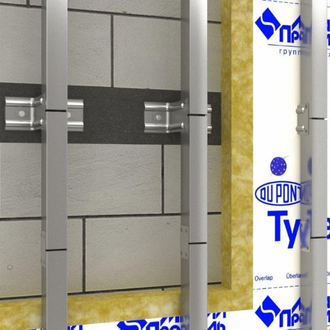 Крепление облицовочных материалов производится на элементы несущего каркаса, которые представляют собой набор специальных профилей, кронштейнов и различных крепёжных кляммеров. Основные профили в подконструкции могут быть расположены: