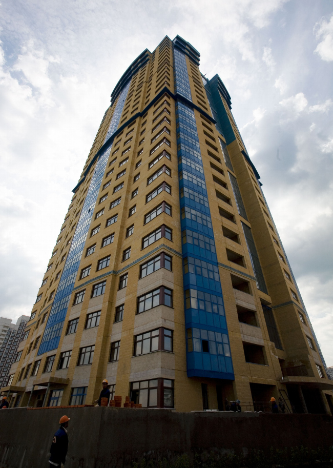 Четыре башни цепочкой выстроились вдоль берега Москвы-реки, перед стадионом Андрея Бокова «Янтарь». От стадиона происходит название квартала жилых башен Дмитрия Александрова – «Янтарный город». От названия происходит цвет фасадов – стены сложены из разных оттенков желтого камня. А по-английски имя этого квартала звучит – ни много ни мало как ‘Amber city’ – город Амбер, хотя сходство с известной фантастической сагой чисто словесное. Две башни завершены этой весной, еще две активно строятся.