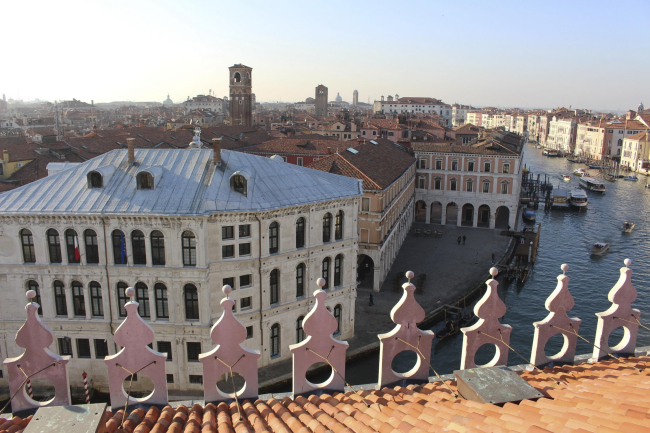 Здание Фондако-деи-Тедески (что можно перевести как «Немецкий двор») было построено в 1228, чтобы служить одновременно жилым домом, местом торговли и складом для быстро богатеющих в Венеции купцов из германских земель. В 1505 разрушительный пожар почти уничтожил палаццо, но через три года, в 1508, его восстановили по проекту Джироламо Тедеско и украсили фресками Джорджоне и Тициана (их сохранившиеся фрагменты можно увидеть сегодня во дворце Ка Д’Оро). В 1797 из-за падения Венецианской республики Фондако-деи-Тедески было покинуто коммерсантами и с тех пор использовалось не по назначению. С приходом к власти Муссолини палаццо было грубо «отреставрировано» с использованием бетона и на долгие годы превращено в почтамт. В сложной биографии здания в 2008 наступил новый период: за сумму в 53 миллиона евро его приобрела компания Benetton – с целью превращения в торговый центр.