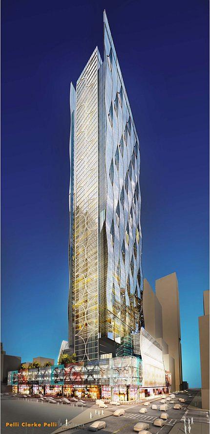Новое строительство связано в данном случае с реконструкцией автобусного терминала Портового управления Нью-Йорка: чтобы сделать перестройку «самоокупающейся», было решено дополнить существующее здание автовокзала 40-этажным офисным комплексом. Это далеко не первая в истории идея такого рода: не так давно нечто подобное было решено сделать в Сан-Франциско. Интересно отметить, что состав архитекторов, участвующих в закрытом конкурсе в Нью-Йорке, почти тот же, что был и в калифорнийском варианте: Сезар Пелли (сан-францисский победитель) и Ричард Роджерс испытывали удачу и там, и там. На Манхэттене к ним присоединилась архитектурная фирма KPF. Лорд Роджерс разработал наиболее сдержанный проект из трех: он видит новую башню состоящей из четырех блоков, соединенных системой перекрещивающихся ферм; мотив крестообразных соединений почерпнут из завершения здания терминала, которое будет дополнено помещенными в стеклянные трубы внешними эскалаторами – прием для Роджерса уже испытанный. KPF, напротив, планирует скрыть металлическую структуру терминала за цветным стеклом, а небоскреб над ним сделать в духе «корпоративной архитектуры» - призматическим объемом с навесными стенами из прозрачного стекла. Сезар Пелли склоняется к подчеркнутой декоративности: его здание имитирует в стекле плетеный орнамент. В рамках реконструкции терминала, кроме строительства офисного комплекса, планируется значительно увеличить число «причалов» для автобусов, а также превратить около 5,5 тыс. кв. м его площади в торговый центр.